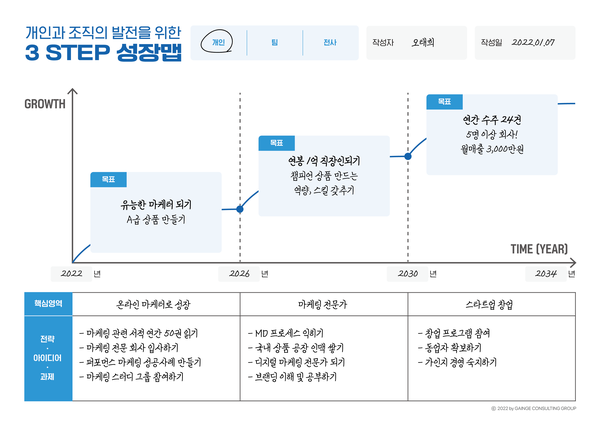 개인의 성장을 위한 체계적인 접근법으로 3단계 성장 맵을 제안합니다. 이 맵은 다음과 같은 주요 이정표를 포함합니다.