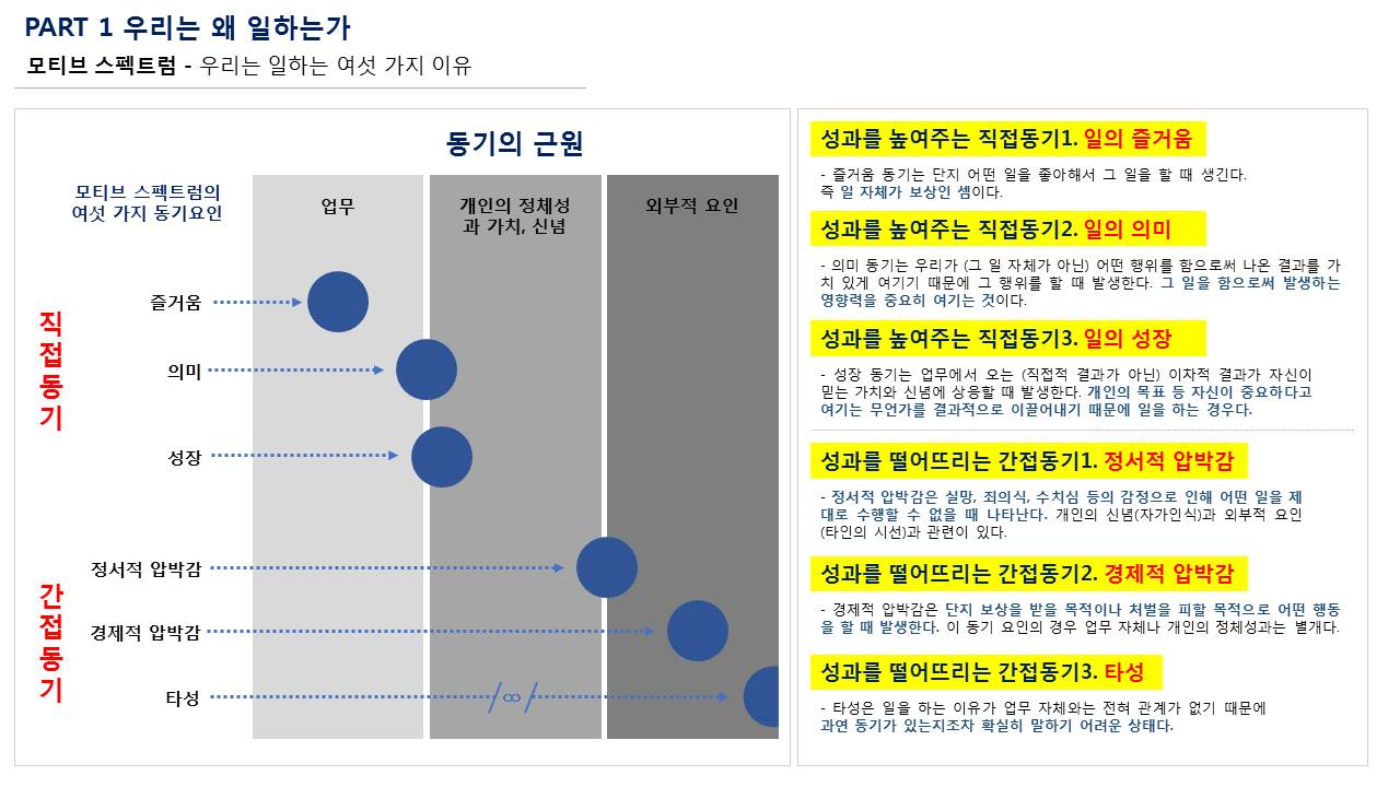 성장을 위한 동기는 여러 가지가 있습니다. 예를 들어, 즐거움, 의미, 성장 등이 직접적인 동기로 작용할 수 있습니다. 이러한 동기는 개인의 업무 참여도를 높이고, 결과적으로 더 나은 성과를 이끌어냅니다. 반면, 감정적 압박이나 경제적 압박 같은 간접적인 동기는 오히려 성과를 저해할 수 있습니다. 따라서 긍정적인 동기를 찾고 이를 강화하는 것이 중요합니다.