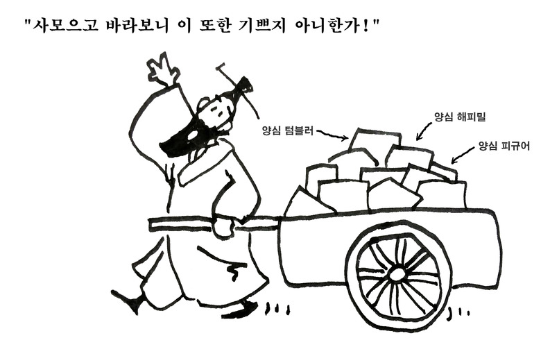 이 만화적인 이미지에서는 학자가 카트를 끌고 다양 박스를 운반하고 있습니다. 이는 배움의 즐거움과 발견의 기쁨을 잘 표현하고 있으며, 배움이란 우리가 가지고 있는 여러 가지 지식을 조합하여 새로운 것을 만들어내는 과정임을 상기시킵니다.